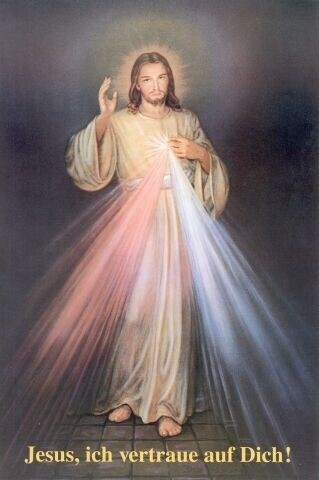 Ewiger Vater, ich opfere Dir auf den Leib und das Blut, die Seele und die Gottheit Deines über alles geliebten Sohnes, unseres Herrn Jesus Christus, um Verzeihung für unsere Sünden und die Sünden der ganzen Welt zu erlangen.